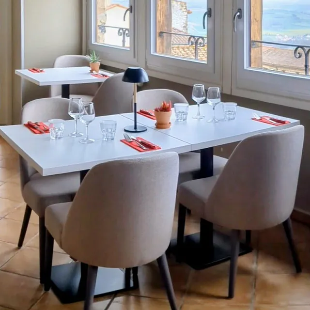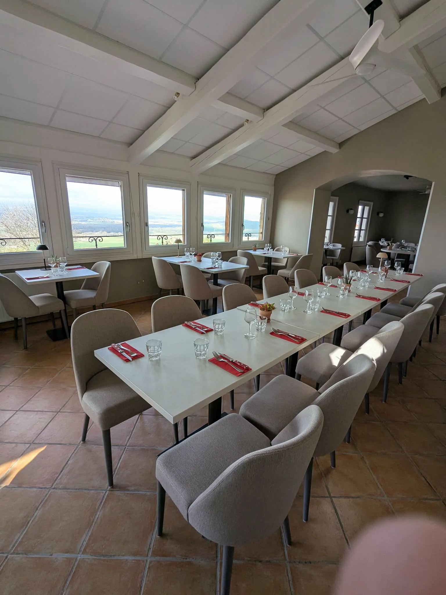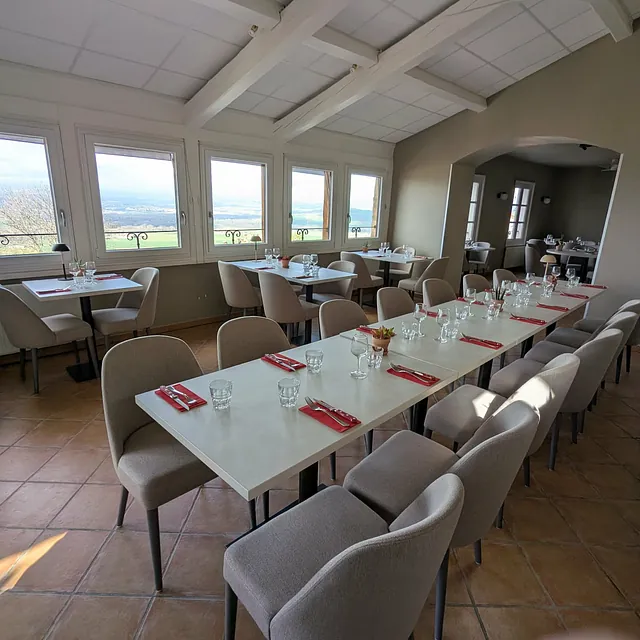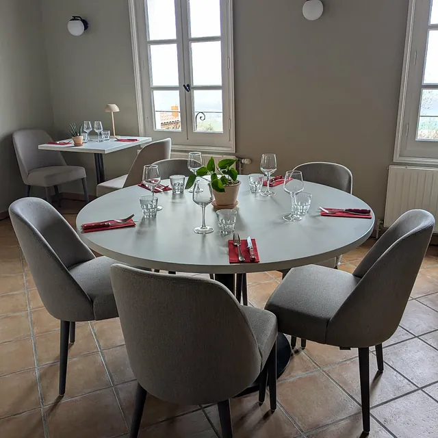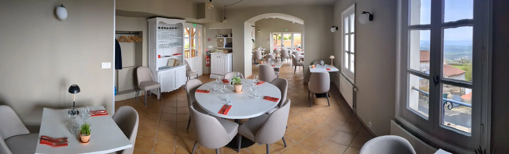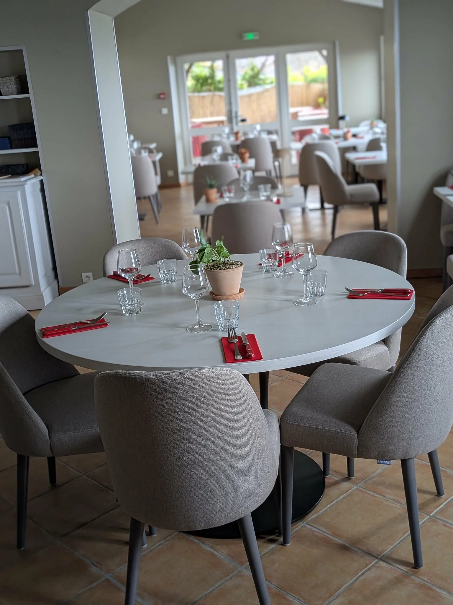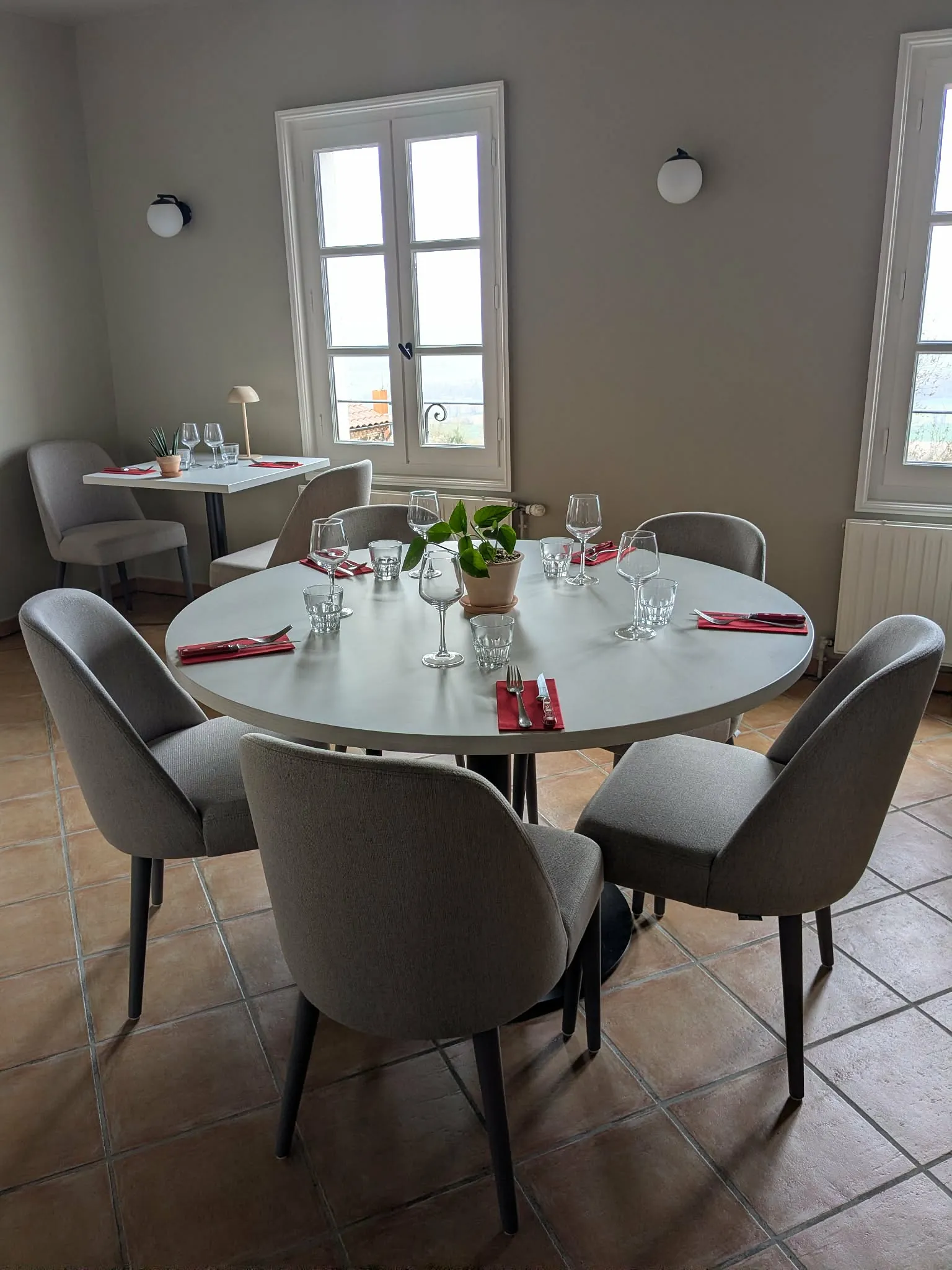 Nous pouvons accueillir 45 personnes dans notre salle de restaurant et 30 personnes en terrasse. Coté cuisine, le chef Georges, riche de 25 ans d’expérience et doté du titre de « Maître restaurateur », vous garantit une cuisine « faite maison » pour satisfaire vos papilles.